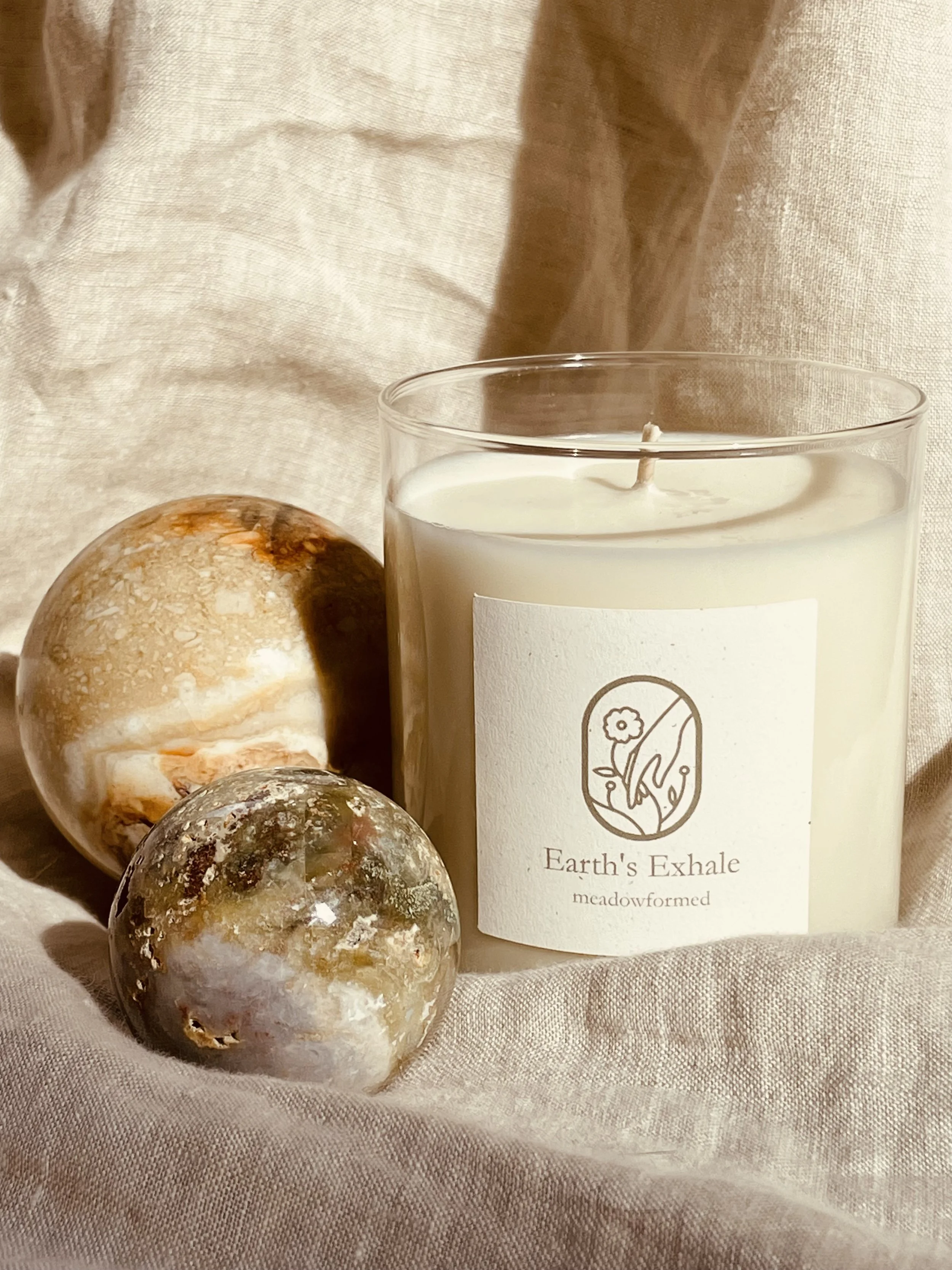 meadowformed candles are mindfully made with soy wax, non-toxic fragrances, cotton wicks, hemp labels, recyclable packaging and reusable vessels.
